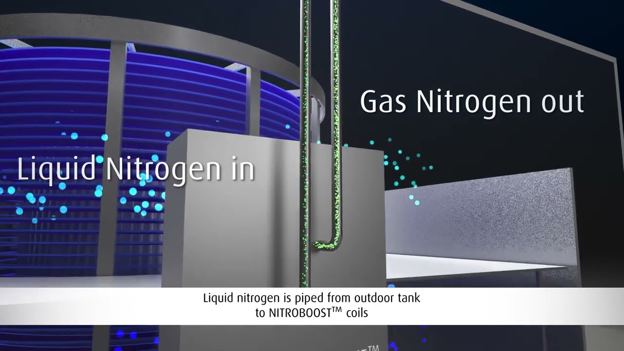 Kort fortalt består systemet af en tank fyldt med flydende, kølende nitrogen. Den kølende nitrogen har en temperatur på omkring minus 200 grader. Tanken er monteret uden på selve fryseanlægget og forbundet med fire rør inde i fryseren.