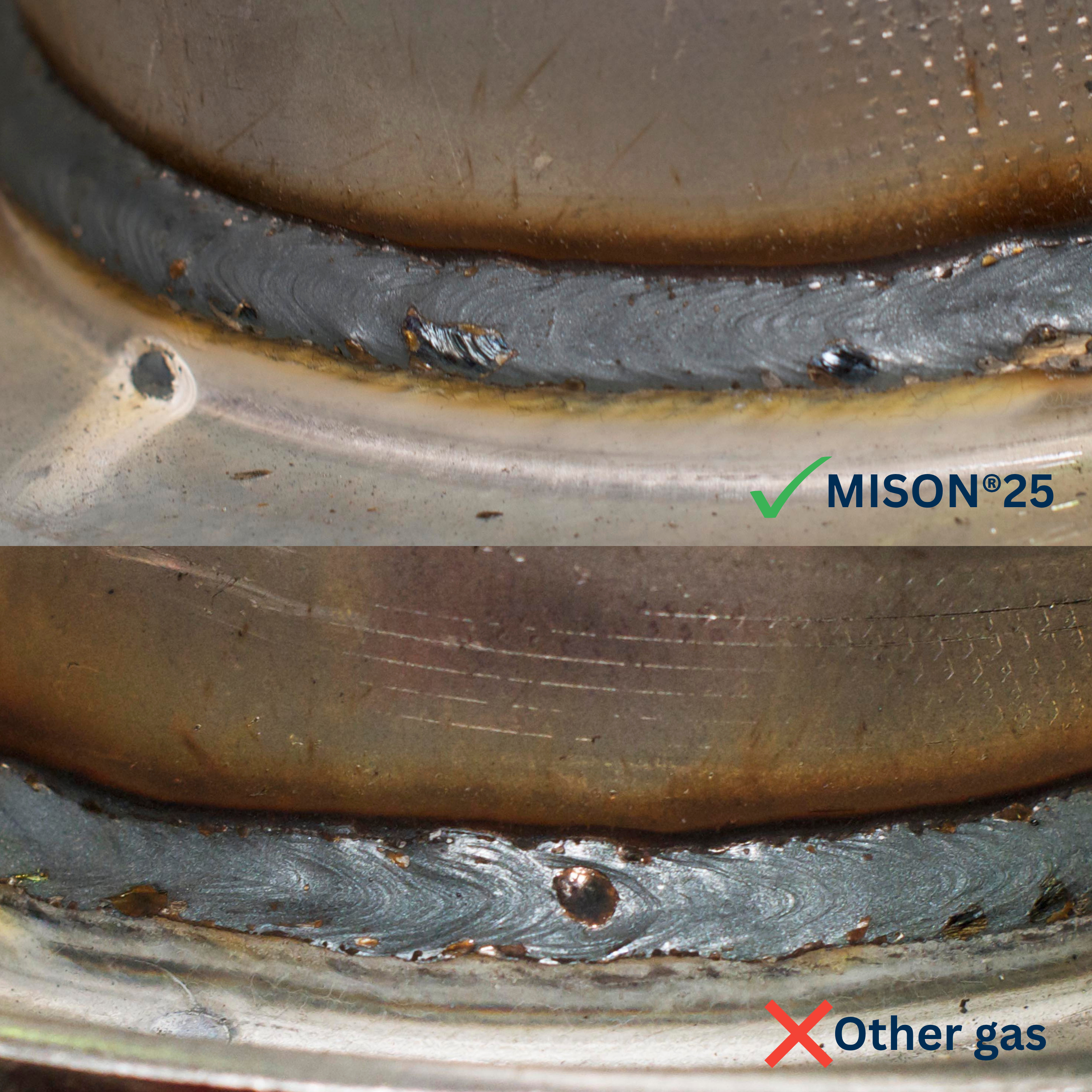 MISON® shielding gases create a stable and smooth arc, enabling precise welding. With a stable arc, the welding process becomes more fluid and manageable, allowing better control over the weld pool.